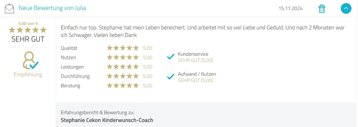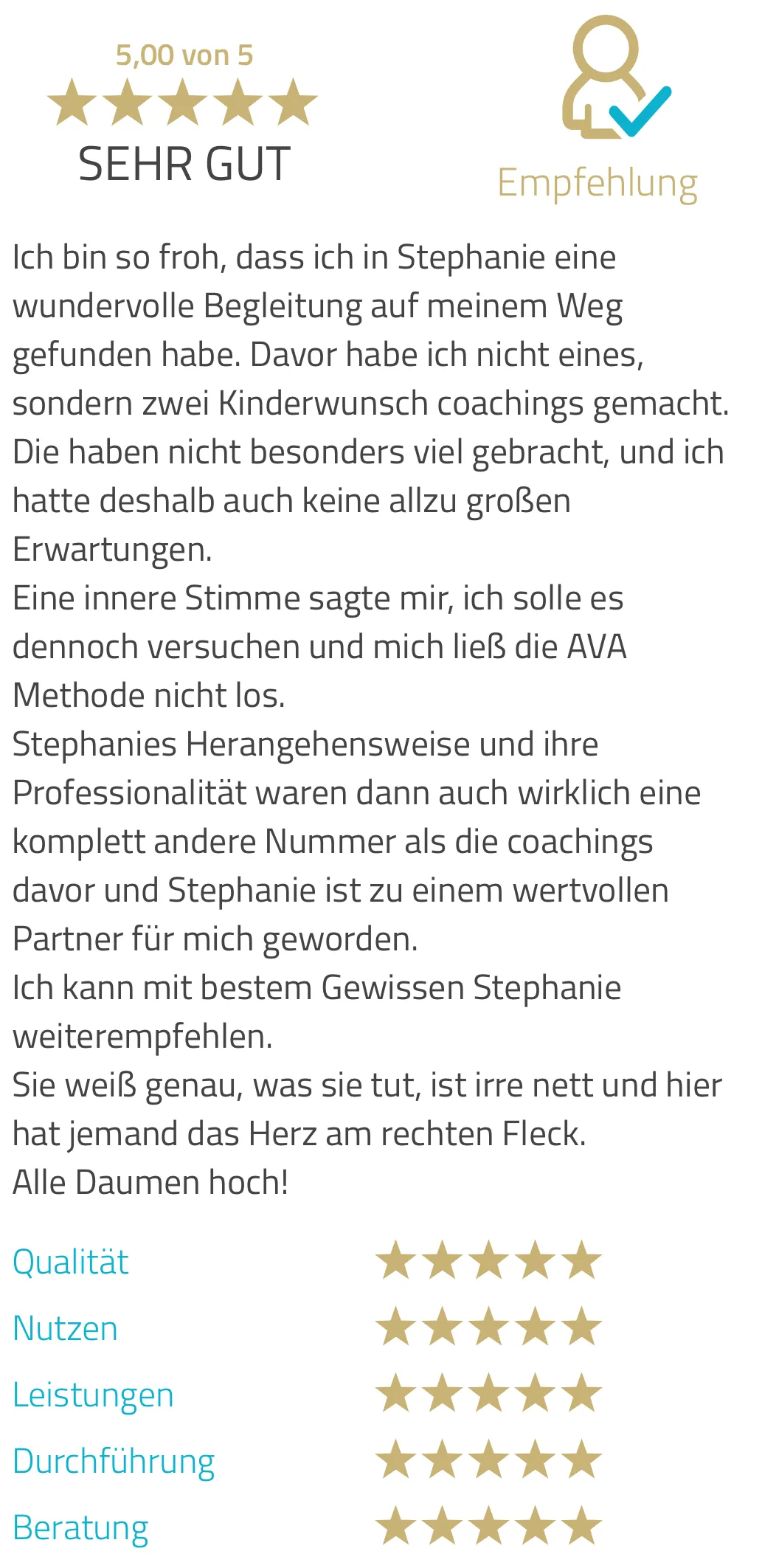 Heute begleite ich Frauen mit Kinderwunsch dabei, wieder Vertrauen in ihren Körper zu finden, mit Freude durch diese Zeit zu gehen und sich ihrem Wunschbaby wieder näher zu fühlen.