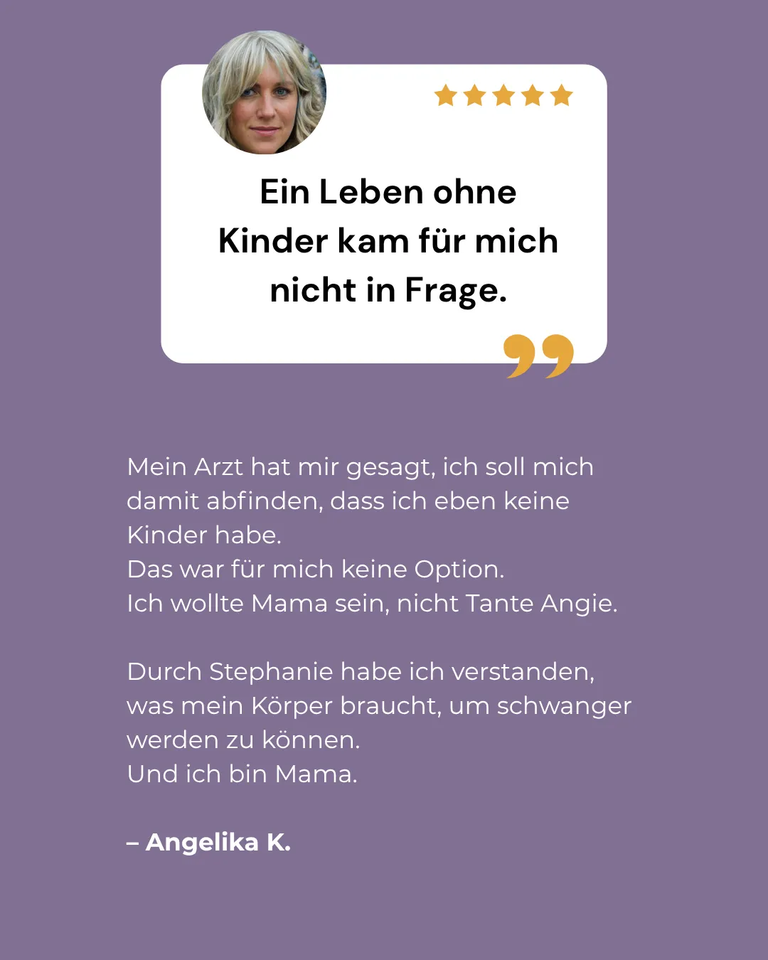 In meinen regelmäßigen Live-Trainings und Fragerunden bekommst du wertvolle Impulse rund um Kinderwunsch, Schwangerschaft ab 35, Fehlgeburten, Vertrauen in den eigenen Körper und den Umgang mit Sorgen und Zweifeln.